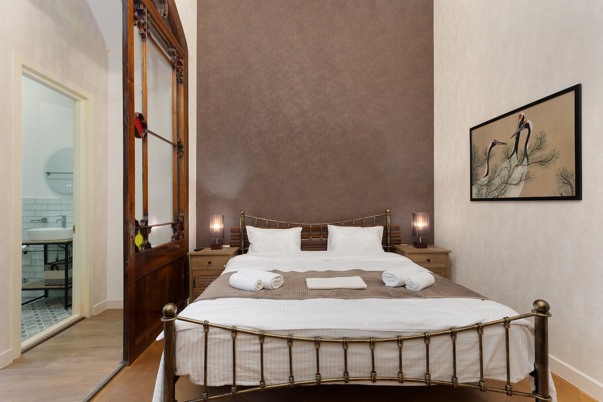 This is a comfortable renovated apartment with exposed brick that has a true Tbilisi feeling. This studio has a transparent bathroom with modern bathtub, king size bed, Chesterfield sofa and etc. The Space (78 sq.m) fits 2 & is located on Old Tbilisi district, on parallel street of main avenue of Georgia Shota Rustaveli Ave. High speed WIFI Internet & IPTV is provided free of charge. Apartment is also well located for transport Metro Freedom Square & Rustaveli stations are walk distance.