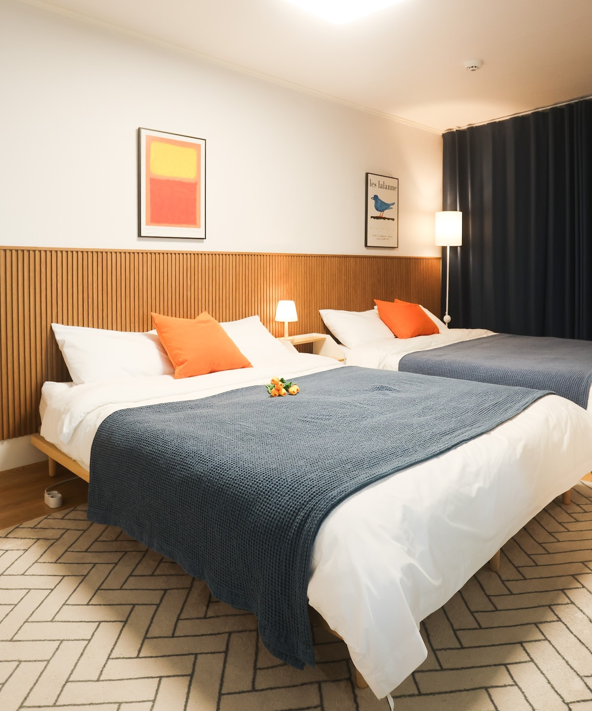 안녕하세요. 쾌적하고 휴양지 느낌의 숙소 진 (JIN). 4호입니다. 저희 숙소는 허가받은 숙소로 편하게 이용 가능하십니다. 😊 4명까지 숙박 가능(퀸 사이즈침대 2대) 친구, 가족, 연인, 나홀로 여행객. 저희 집에서 행복하고 편안한 시간 보내시길 바래요. 【체크인 & 체크아웃】 체크인: 오후 3시 체크아웃: 오후 12시 ☆ 셀프체크인 - 전자 도어락 시스템으로 체크인 정각에 비밀번호 발송됩니다. ☆ 무거운 캐리어와 짐을 숙소 현관 앞에 핸드캐리 해 드립니다!!! 🌞 *체크인 전 정오 12시까지 숙소 1층 내부 현관 앞에 캐리어와 짐을 놓고 호스트에게 사진 찍어 보내주시면 됩니다. 😄 ☆ 짐 보관 서비스 체크아웃 후 짐보관 가능 서비스가 필요하시면 적어도 하루 전날 말씀주세요 :) ☆ 콜 벤 예약서비스 공항에서 저희 숙소까지 편히 오실 수 있도록 교통편 예약 서비스 진행하오니 해당 서비스가 필요하시면 미리 알려주세요! 😊