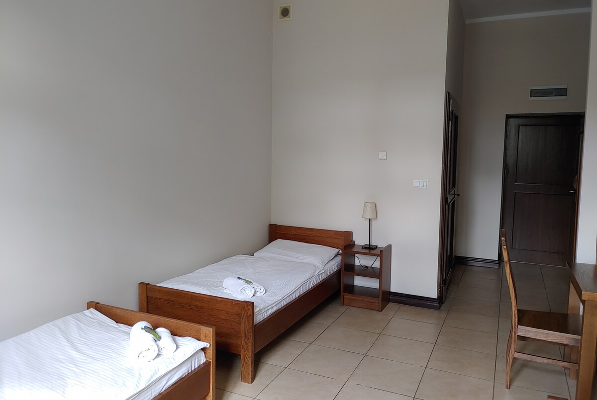 Room with two single beds (Twin) at Hotel A4. The hotel is located near the Wrocław Bielany junction of the A4 motorway. It has very good access to the center of Wrocław. An ideal place for a relaxing break during travel, exploring Wrocław, or accommodation for employees.