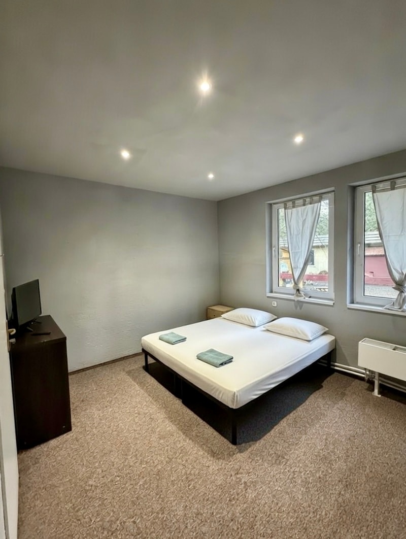 Komfortowy pokój jednoosobowy, mieszczącym się w kamienicy z wysokimi sufitami, które nadają wnętrzu klimat i poczucie przestrzeni. To idealne miejsce dla rodzin, grup znajomych i gości podróżujących służbowo. Do dyspozycji gości jest smart TV, szybkie WiFi ~250 Mb/s, biurko, lodówka, czajnik: kawa, herbata i cukier. Ogrzewanie podłogowe, ręczniki oraz zestaw kosmetyków.Piętro wyżej znajduje się ogólnodostępna, w pełni wyposażona kuchnia o powierzchni 100 m², pralka i suszarka.