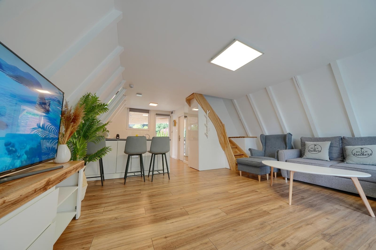 Domek dla 7 gości, dodatkowo gratis do wynajmu otrzymują Państwo dwie deski SUP, które z pewnością umilą czas spędzany nad wodą. Do dyspozycji jest również duży plac wraz z miejscem na ognisko wokół domku które zapewni relaks przy ognisku lub na leżakach dla dorosłych oraz mnóstwo miejsca na zabawę dla dzieci. Nieruchomość wyposażona jest także we wszelkie niezbędne urządzenia do udanego wypoczynku, znajdziemy tam między innymi w pełni wyposażoną kuchnię, kostkarkę do lodu czy zmywarkę.