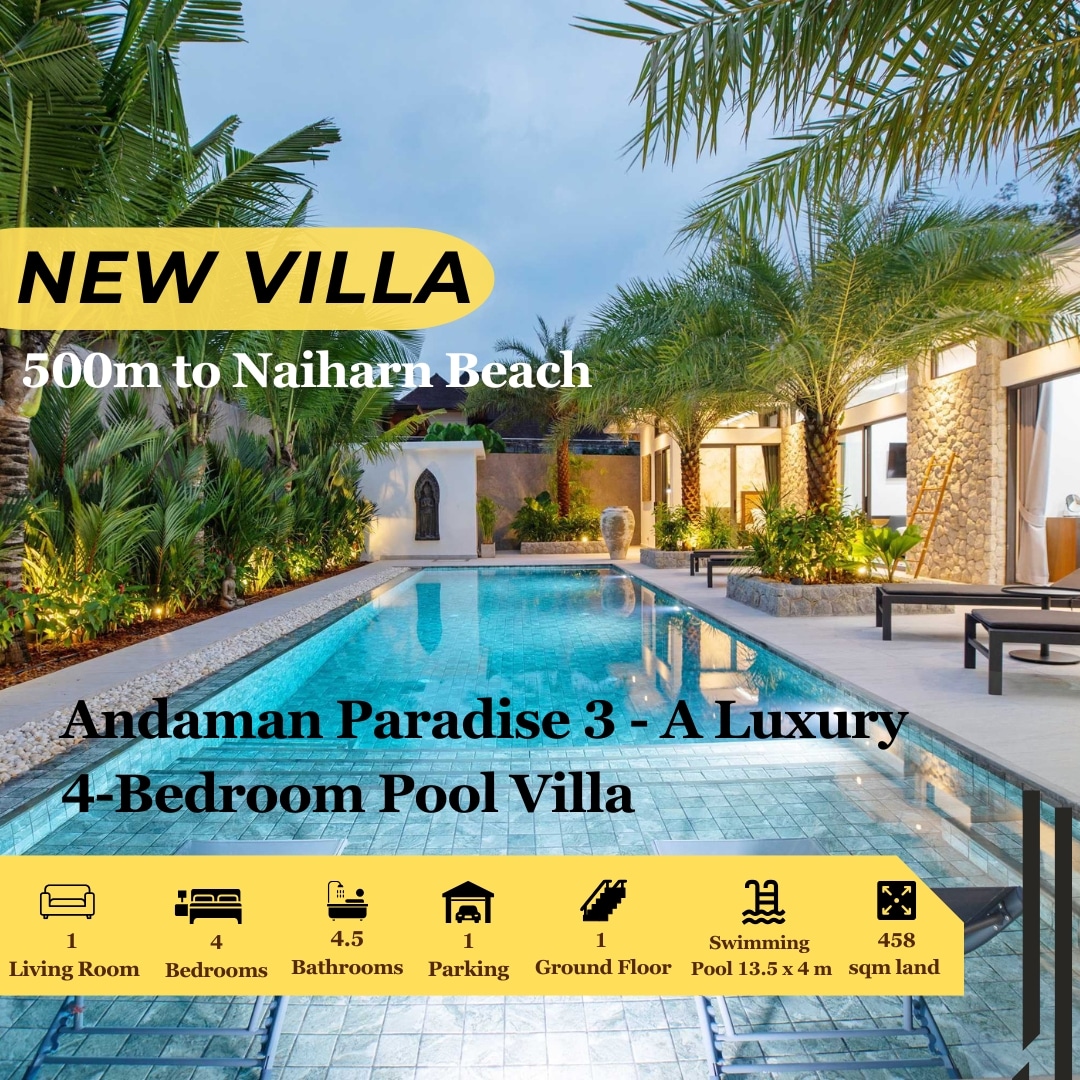 Welcome to Andaman 3, a luxurious 4-bedroom villa in Rawai with office space. This spacious retreat blends elegance and comfort, featuring stylish bedrooms, modern interiors, and a private pool to enjoy tropical vibes. Thoughtful details create a serene escape, with easy access to Rawai’s beaches, dining, and attractions. Perfect for families or friends seeking an unforgettable getaway. ✨ We provide not just a stay, but an unforgettable Phuket experiences✨