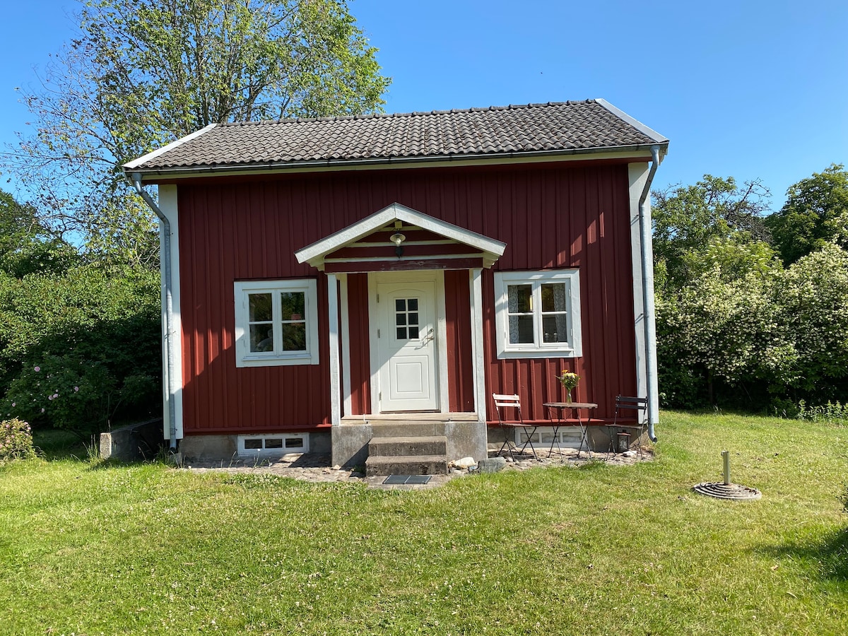 Njut av lugnet i Dansjö! Välkommen till detta fina, mysiga & bekväma lilla hus (25kvm) . Helkaklad dusch m golvvärme, utrustat kök, stor altan, trädgård & grill.1 rum m 140-säng + 1 rum m matplats o bäddfåtölj. Bra wifi. Här kan ni paddla, fiska, vandra & cykla runt i vackert historiskt landskap. Golfbana med restaurang & skidbacke/downhillåkning 1 km bort. Segelflyggklubb 3 km. Kanot, två kajaker & cyklar ingår. Värdparet är ibland i stugan intill men utlovar avskildhet.