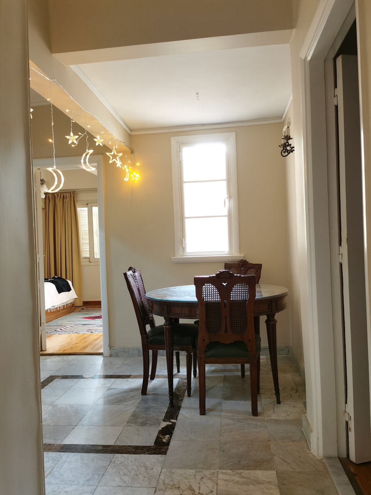 Step into a slice of cinematic history with Mint Stays Egypt – the key to your stay. Our charming apartment, a backdrop for iconic Egyptian films, invites you to relive the golden era. Enjoy breakfast on the terrace, boasting breathtaking views. The master bedroom features late 18th-century furniture, the dining room exudes timeless Art deco furniture elegance. You'll find original 1950s to 1980s film posters adorning the walls. Discover comfort and nostalgia in every corner.
