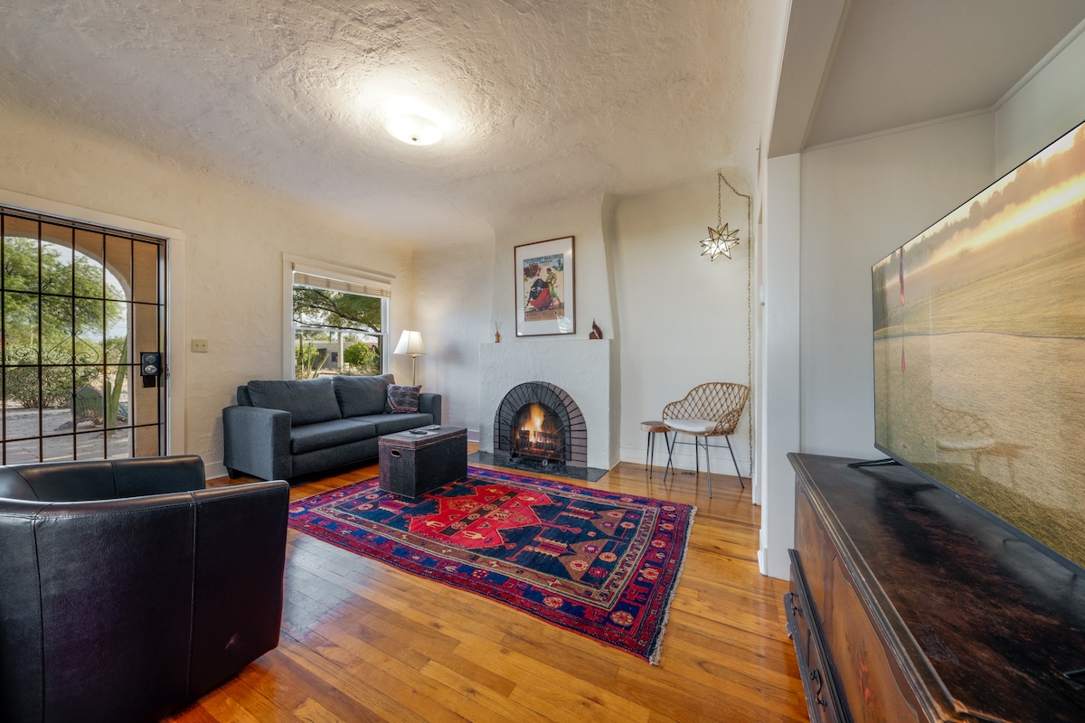 Experience the vibrant heart of Tucson in our beautifully renovated home—your perfect retreat in 'The Old Pueblo. Enjoy spacious vaulted ceilings and a dedicated office nook—ideal for remote work or catching up on emails. Stroll to local favorites, like Culinary dropout or Prep and Pastry, or take a short drive to explore Saguaro National Park. Convenient off street parking just outside of the home with 24/7 video camera monitoring. convenient in home washer/drier and a fully stocked kitchen.