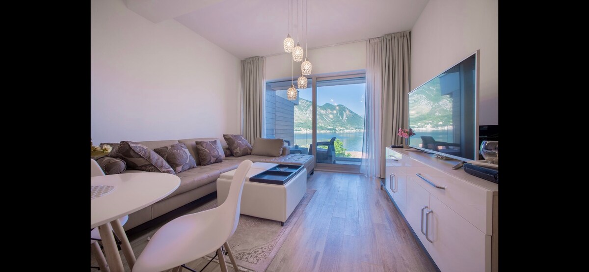 Welcome to Zeytin Apartment – a modern 1-bedroom flat with a 19 m² terrace offering stunning views of the Bay of Kotor. Located in a quiet Boka Heights complex in Dobrota, guests also enjoy access to a shared pool. The apartment includes a bright living room, fully equipped kitchen, and sea-facing terrace perfect for relaxing. Kotor Old Town and Perast are nearby, with cafés, a bakery, and markets just a short walk away.