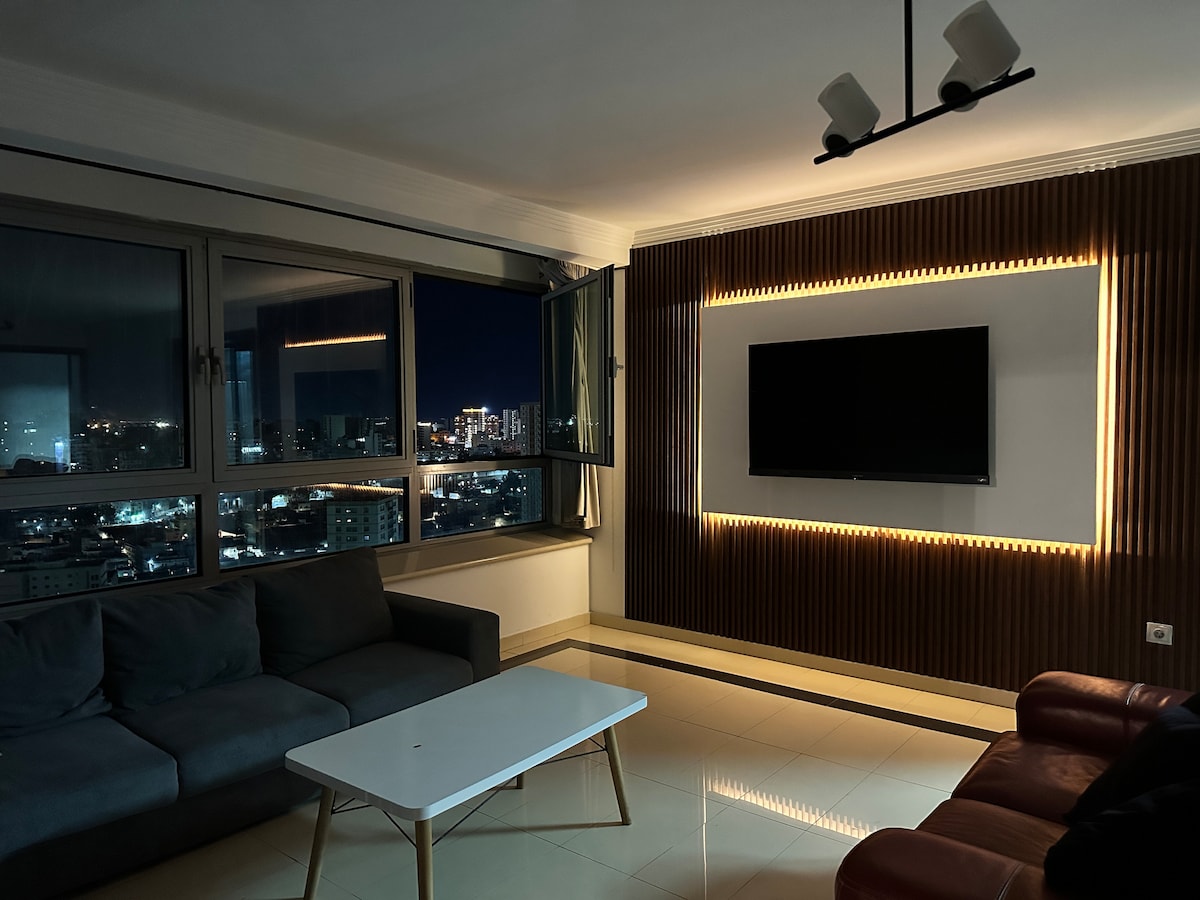 A high standard apartment located at the Oran residence boulevard les cliffs near the Sheraton hotel and four point In the heart of Oran. A spacious accommodation at the top with a breathtaking view of the entire city of Oran which will allow you to spend a pleasant stay with your loved ones or family -Secure residence monitored by security agents and surveillance cameras Gym available at the bottom of the residence Outdoor parking area with guard