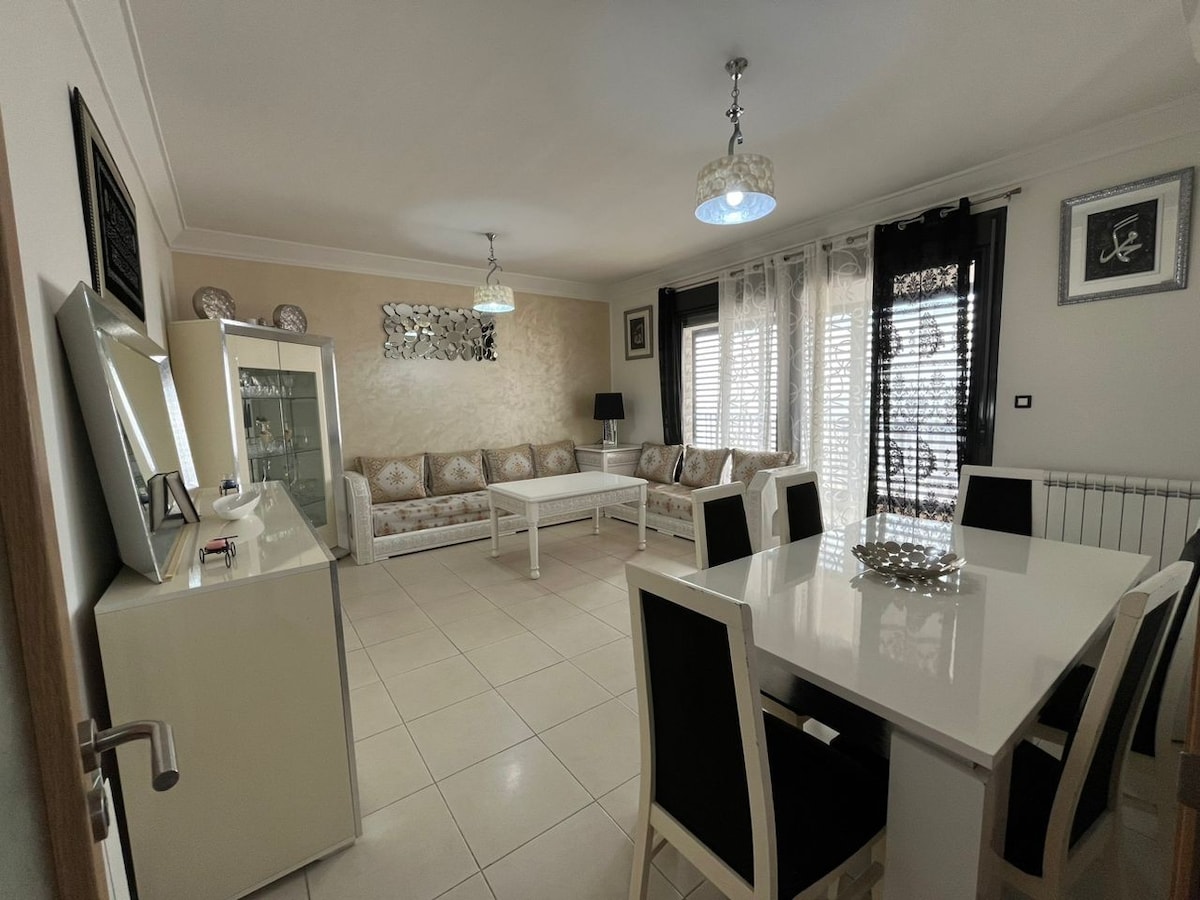 Location d'un bel appartement F4 2ème étage à Akid Lotfi Oran meublé et très bien équipé ( climatisation, chaudière, électroménager, vaisselle, eau h24...) dans un endroit calme et sécurisé près de toutes les commodités (boutiques, restaurants, cafétéria, jardin...) à 05 minutes à pied du boulevard animé d'el Akid et du jardin de méridien. la location concerne uniquement les familles (livret de famille obligatoire) et les missionnaires.