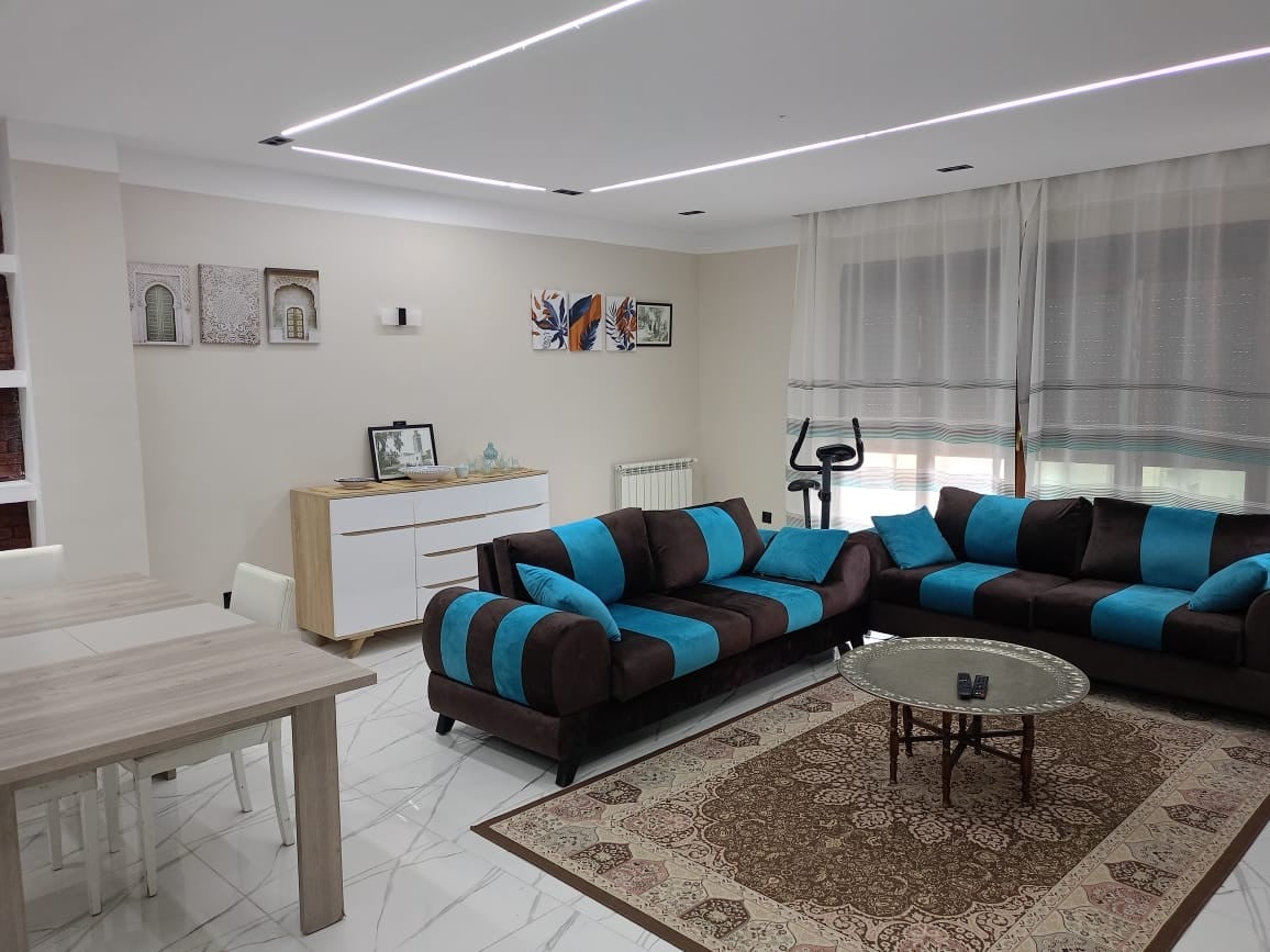✨ Spacious high-standing apartment of 150 m² in the city center of Oran. Bright and fully air-conditioned, it offers 3 comfortable bedrooms, a large living room with OLED 4K TV (Netflix, Prime, Apple TV+), a modern equipped kitchen and a spacious bathroom. Two large balconies with a beautiful view. Quiet and secure residence with guard, close to shops, restaurants and all amenities. Ideal for families, tourists and business travelers.