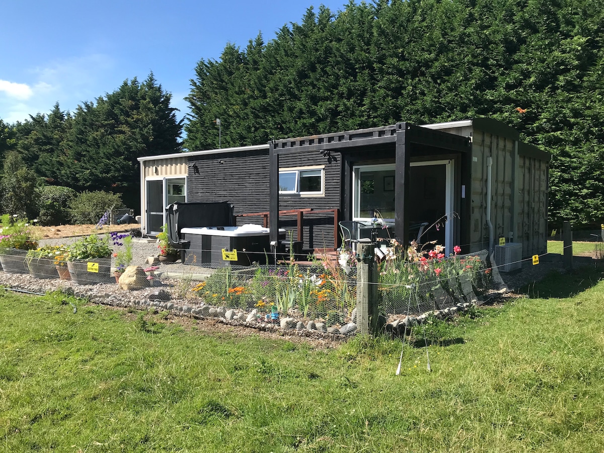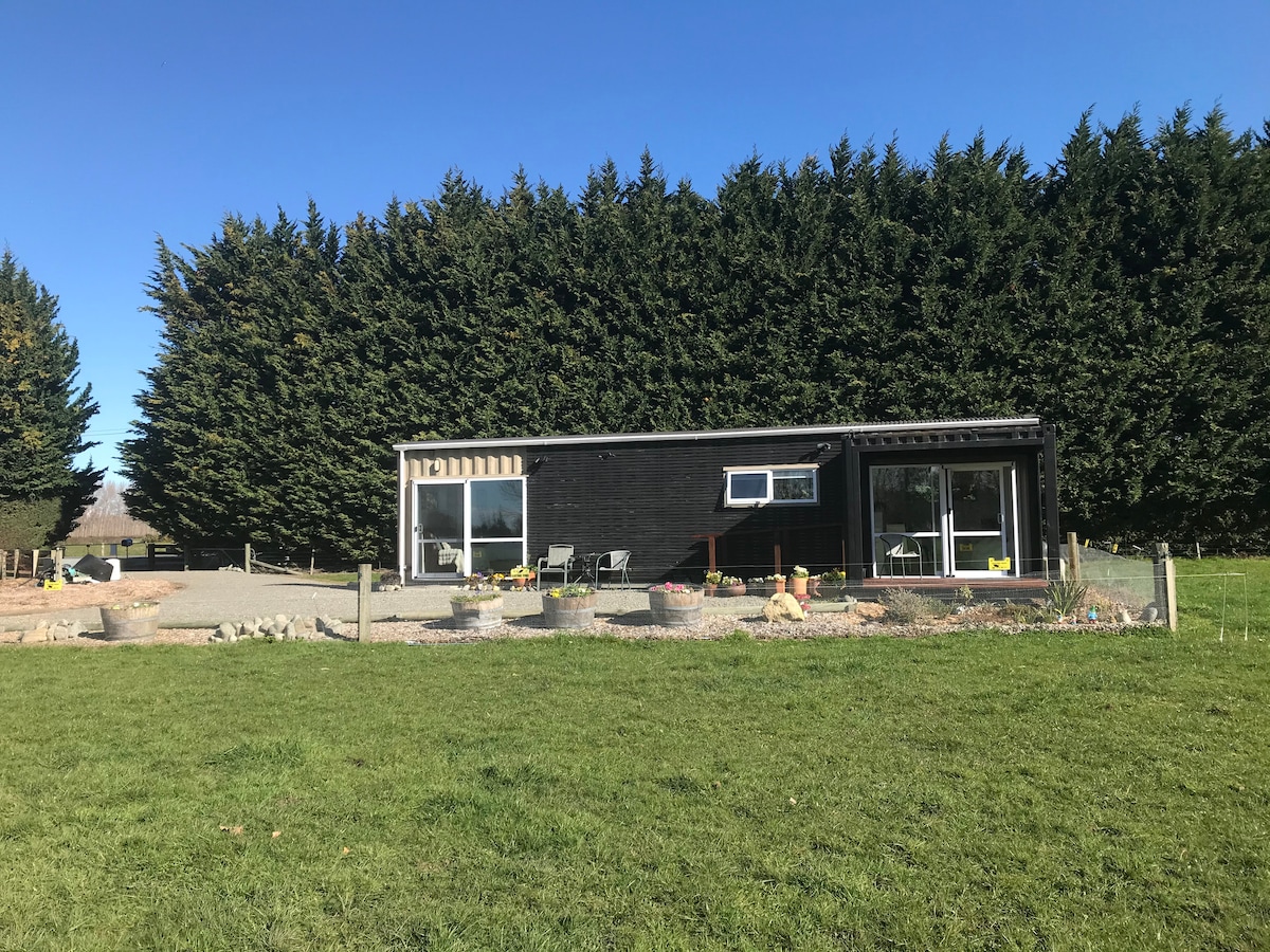 Contemporary self contained modern cabin situated in a peaceful and private garden setting. It has 2 double glazed doors leading on to a deck with out door seating. Separate access way, with parking bay at side of cabin. Additional parking is available in adjoining paddock with gate through to alleyway. Cabin has starlink wifi with excellent wifi connection. The cabin is on a lifestyle block, with extensive gardens, orchard, herb garden, sheep, chickens, and hydroponic system.