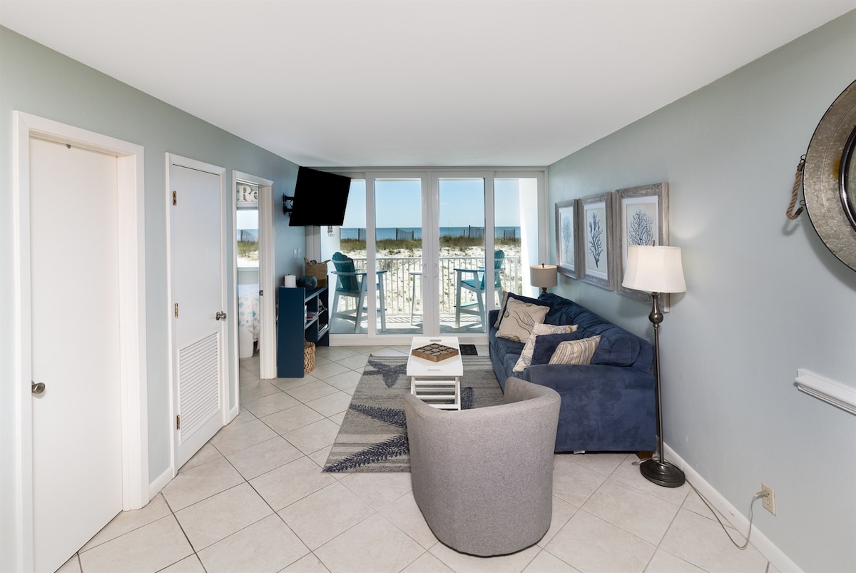 Sugar Beach: Serenity by the Seashore The condo has direct access to Orange Beach for your fun in the sun destination. Our condo is great unit for a family, couples, or a much needed get-a-way destination. There are many amenities offered and you are a few short steps to the beach. Amenities including an elevator, 4 pools (1 heated in winter) kiddie pool, snack bar, tennis & shuffleboard, BBQ, covered parking! The condo is 616 sq ft. Please feel free to reach out directly with any questions