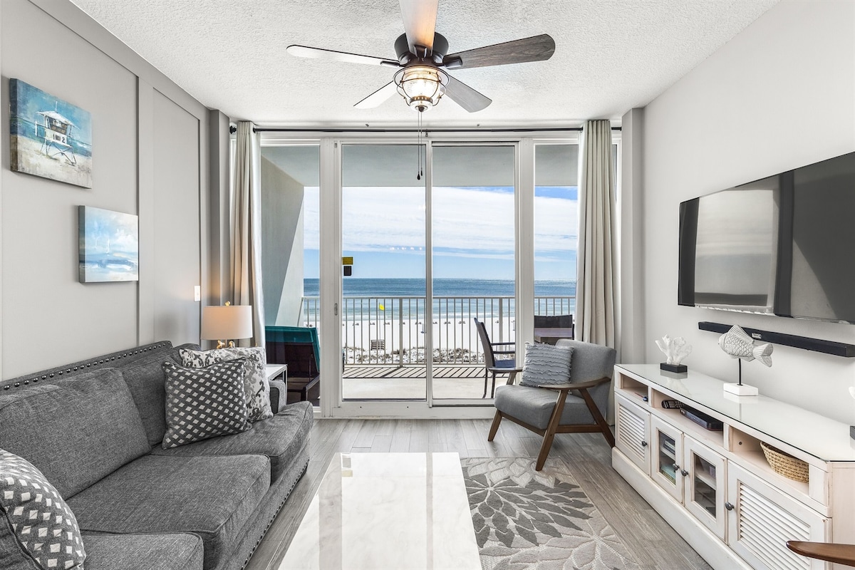 Experience breathtaking Gulf views from this beautifully renovated 2-bedroom, 2-bathroom condo. Centrally located and less than 1 mile from The Hangout, it offers convenience and easy access to attractions. Unwind on the oversized balcony, where you can enjoy the soothing sound of waves while marveling at both the sunrise and sunset. Situated in one of Gulf Shores' most sought-after condo complexes, this home provides an exceptional beachfront experience. Notably, this condo is perfect for fami