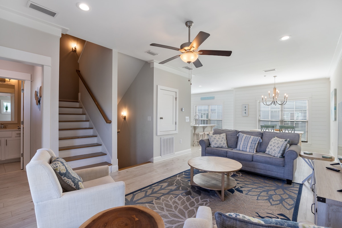"Sandy Feet Retreat" is located in the heart of Gulf Shores. Walk to the white sands of the Gulf of Mexico, "The Hangout", other restaurants, shops, entertainment and Gulf Shores Park. This newly constructed home is the largest Villa in this private Gulf Shores community. Enjoy the ocean breeze and sounds from three decks. Finishes are modern and airy providing a truly relaxing environment. Also has private outdoor grill and covered parking. A community pool is shared by the 7 Villas.