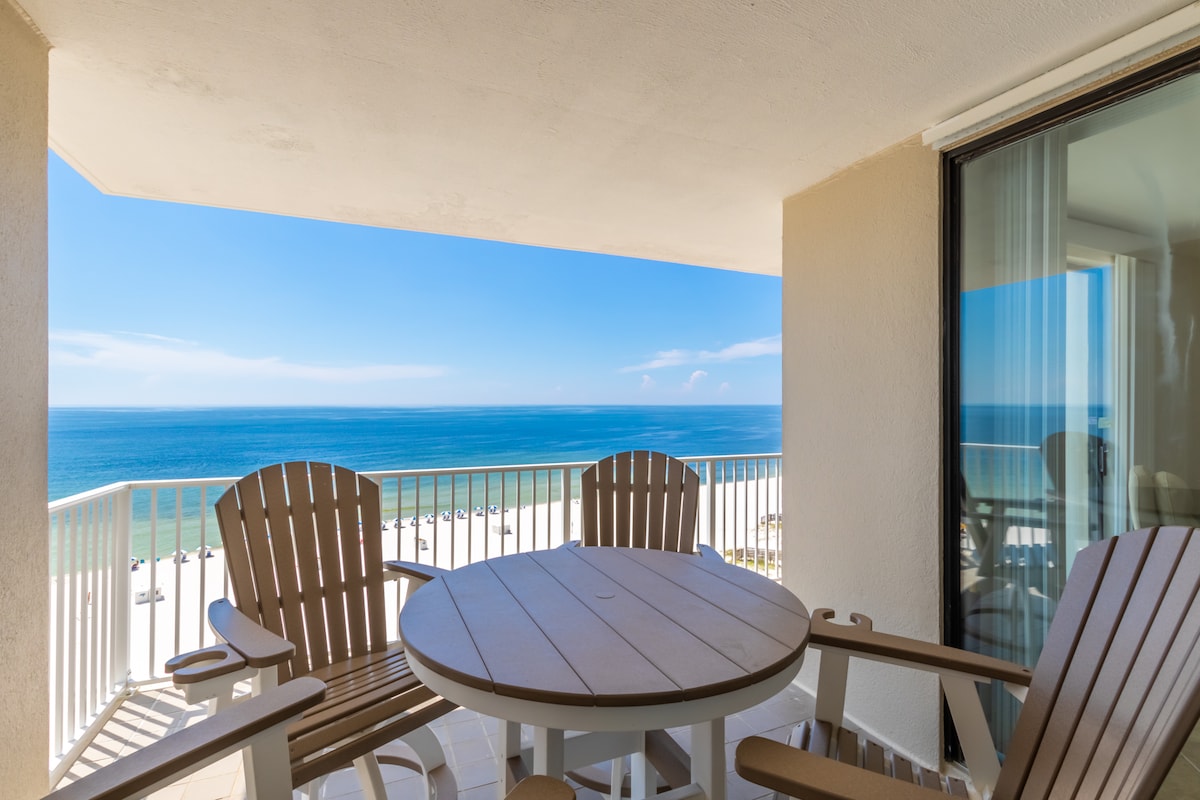 Wake up to the sound of waves and step onto your massive private balcony overlooking the Gulf of Mexico. This 14th-floor west-end condo offers panoramic, unobstructed beach views and direct access to the powder-white quartz sand and blue-green waters of Orange Beach. Whether you're sipping coffee at sunrise, reading a book in the ocean breeze, or sharing dinner with family as dolphins pass by — this is what beach vacation dreams are made of,