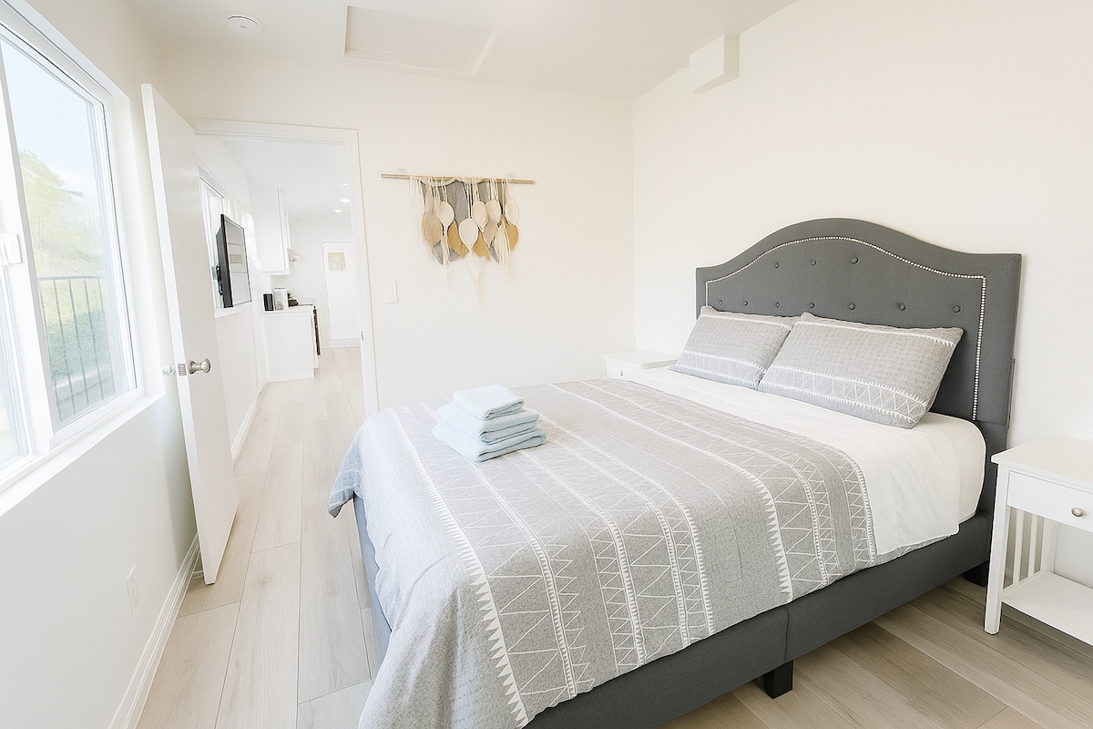 ✨ Newly Remodeled, Clean, Cozy 1st-Floor One Bedroom Master Suite w/Attached Bath and Private Entrance • 10 Mins ⇆ Disneyland • No Curfew, Self-Check-In • Free Driveway Parking in a Safe, Quiet Neighborhood • Comfy Bed + Premium Linens • Fast WiFi, A/C, Air Purifier, Smart TV, Mini Fridge • Convenient Location & Quick Freeway Access • Microwave, Coffee Maker, Hot Water Kettle • Large, Relaxing Private Outdoor Patio w/Sunbed • 5 Mins ⇆ Knott’s, Dining,Shopping • Beach Towels • Toiletries
