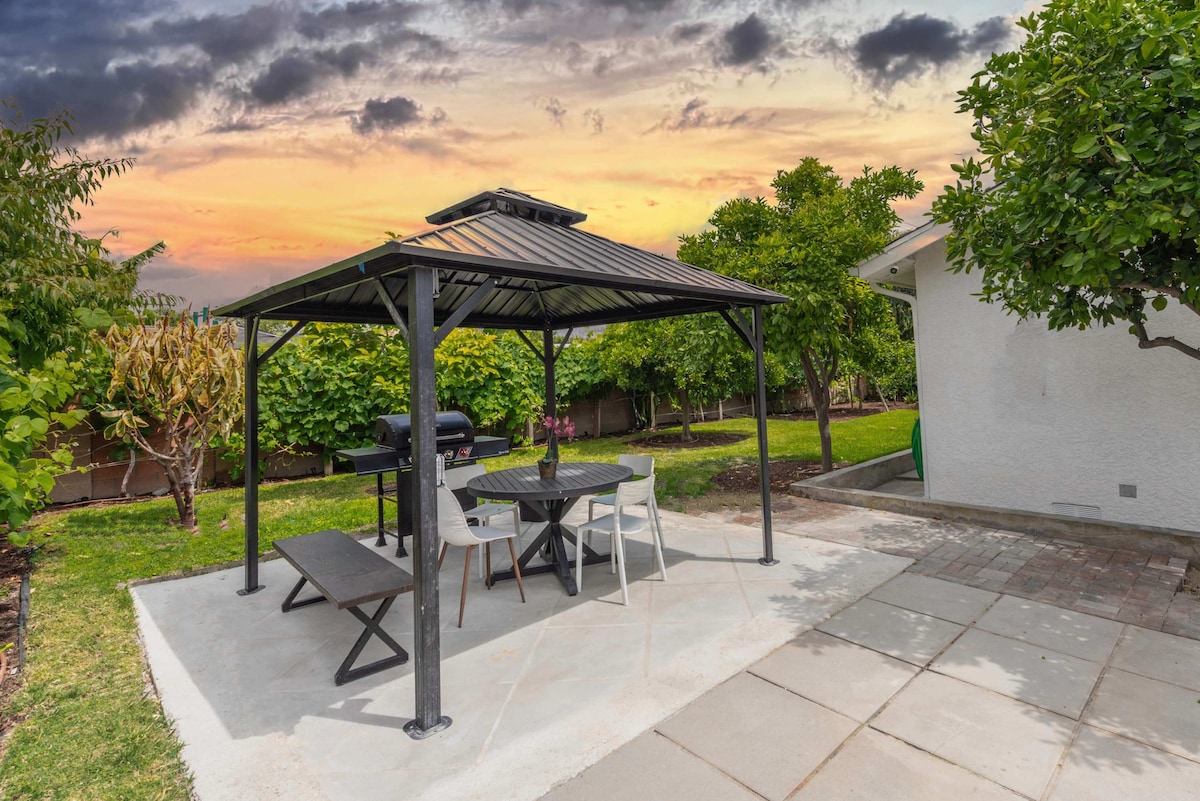 Welcome to our newly remodeled 6 Bedroom, 4 Bath Villa with 3000 sqft, just 2-3 miles from Disneyland, Knott's Berry Farm, and the Convention Center. Enjoy high ceilings, stylish design, Relax in the serene backyard with lush vineyards and fruit trees. After a fun day at the theme parks, unwind with Arcade clasic games and Apple games on lightning-fast 1GB internet. Experience luxury, comfort, and tranquility in our exquisite villa, perfect for family and friends. Book your stay today!