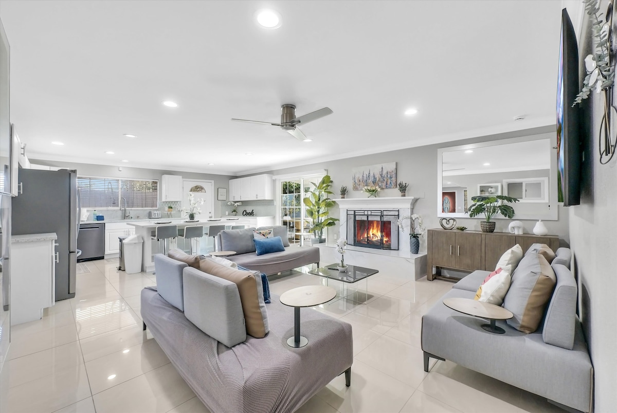 Welcome to our opulently furnished royal suite, nestled in the heart of Orange County. Our location offers the convenience of being just an 8-minute drive from Disneyland and 20 minutes away from the sun-kissed beaches. Additionally, you'll find yourself in close proximity to downtown Santa Ana, a vibrant hub boasting trendy bars and exciting dining experiences. Our recently remodeled home, reconstructed from the ground up, ensures your comfort and can comfortably accommodate a small family.