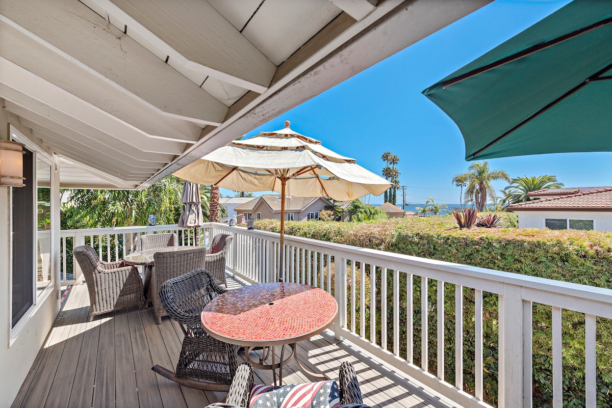 The OCEAN VIEW ESCAPE is just over one mile (just a five minute drive) to our famous T-Street beach, dozens of other amazing beaches and the main pier area. Our property offers a sweeping ocean view from the main living areas and rear patio and it is a clean, understated getaway with 3 bedrooms and 2.5 bathrooms. It is a very private beach cottage style house with open beam ceilings, and a double car garage and is close to everything you could ever want in the beach village of San Clemente.