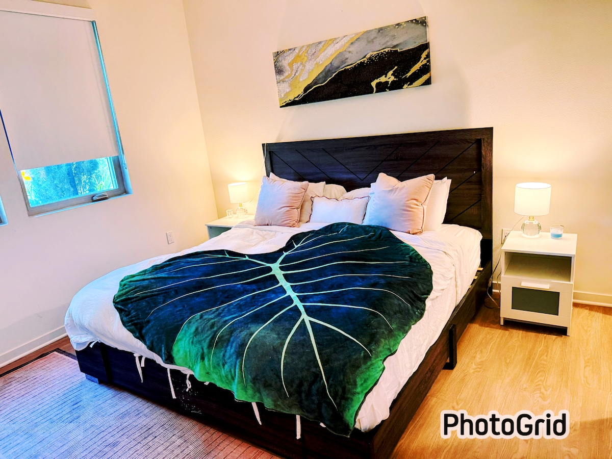 Nothing less than a SPECTACULAR apartment. KING Bed. Sleeps 2 comfortably. Sleeping in couch is optional. Full shower. Approximately 725 sq. ft. A 65” Smart TV in the living room. In unit Washer/Dryer (detergent). Full kitchen with everything you need for a short or long stay. Refrigerator with ice maker. FAST WiFi. Shared pool, jacuzzi and gym. Completely sanitized and clean. One assigned parking space. Please come in peace or don’t come at all. Enjoy