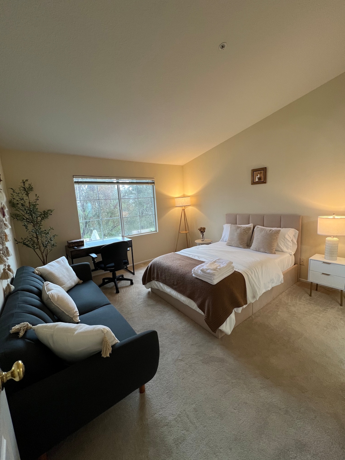 Fully sanitized and cleaned after each booking. Newly renovated place, located directly across the street from the Rancho Santa Margarita lake and beach club. Washer and dryer are inside the unit. Full kitchen with new appliances; perfect for entertaining guests. If you’d rather dine out, many award winning restaurants sit at the shore of the lake. Trails, parks and hiking within walking distance. Pool and jacuzzi access. Beautiful view of mountains, stars/sunset. 25 minutes from Laguna Beach.