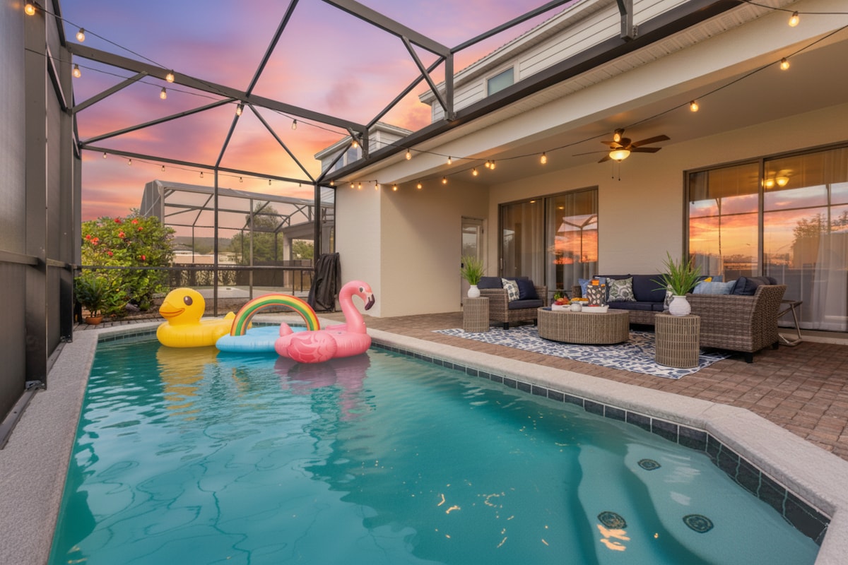 Family-Friendly Orlando Vacation Home Near Disney & Universal ✨ Welcome to your dream getaway! This spacious 4-bedroom, 3-bathroom villa is perfectly located just 25 minutes from top attractions. With themed bedrooms, first floor bedroom and bathroom and access to resort-style amenities, our home is designed for unforgettable family vacations.🌟 Why Guests Love It: •Themed Bedrooms: Lion King mu •Resort-Style Amenities: Relax in the tropical pool, hot tub, fitness center, clubhouse, and arcade.