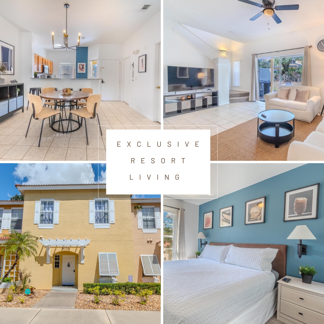 Minutes from Disney, stylish & peaceful Townhouse, with 4 bedrooms and 3 full bathrooms, fully equipped kitchen for up to 8 guests, located in the family friendly Storey Lake Resort. Enjoy our private pool with optional water heater. The open floor plan blends Kitchen, Dining and Living room. Close to outlet malls & retail stores. Great Resort amenities: Heated Pools, Kids Splash Zone, Water Slides, Lazy River, Gym, Mini Golf, Lake, Kayak, Tiki Bar, Ice Cream Shop & more.