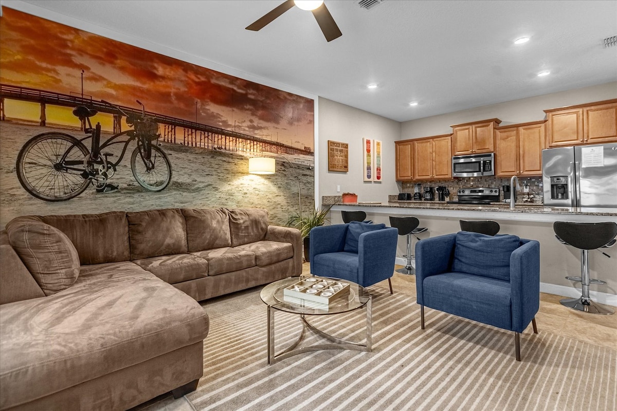 This stunningly designed townhouse is the perfect family escape, located just 4 miles from Walt Disney World 🎢. Relax in spacious king-size rooms, splash in your private screened-in pool, and enjoy top-notch resort amenities. Bring the whole family – furry friends included – and create magical memories at nearby theme parks! 🐬 16 miles to SeaWorld 🎢 19 miles to Universal Studios ✈️ 27 miles to Orlando International Airport Your dream vacation starts here! Book now!