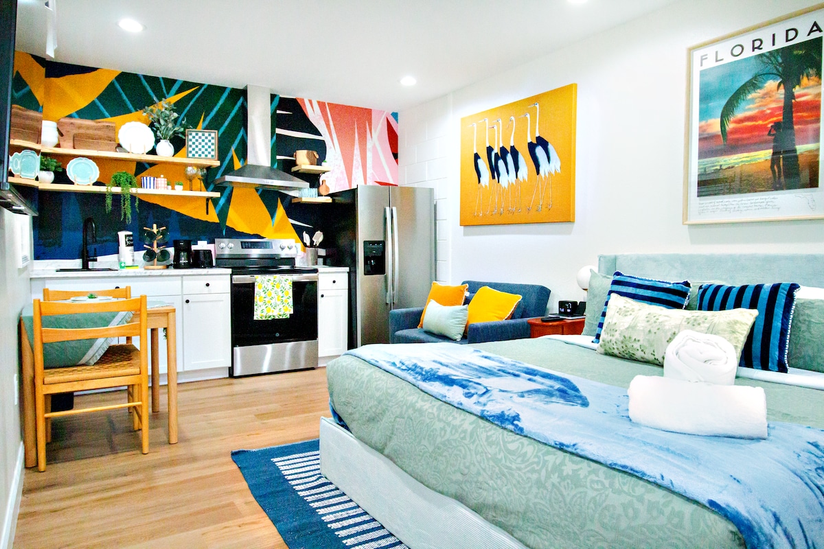 Conveniently located between the foodie-friendly Milk District and Downtown Orlando, this impeccably thought-out space features a spacious loft style open floor plan perfect for a couple or small group. The floor to ceiling windows allow natural light to fill the space while providing complete privacy during your stay. Upscale Winter Park restaurants and the vibrant Thornton Park art scene are only a short drive away. Universal is only 20 minutes away, Disney is 35 minutes, MCO 20 minutes.