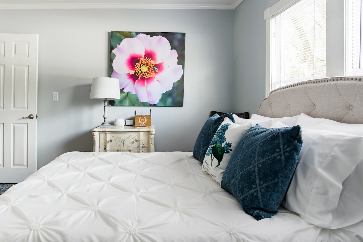 Bonheur A la Maison is the home that offers a beautiful, comfortable, spacious, convenient and all around happy feeling with the little extras and attention to detail to make you feel like you're basking in a lot of luxury for a simple price! Its everything you need from your blow dryer, to your plush robe and from your USB outlets at all bedsides to your built in wireless speakers for your music of choice. We tried to think of it all. Conveniently located near lots of shops and parks!