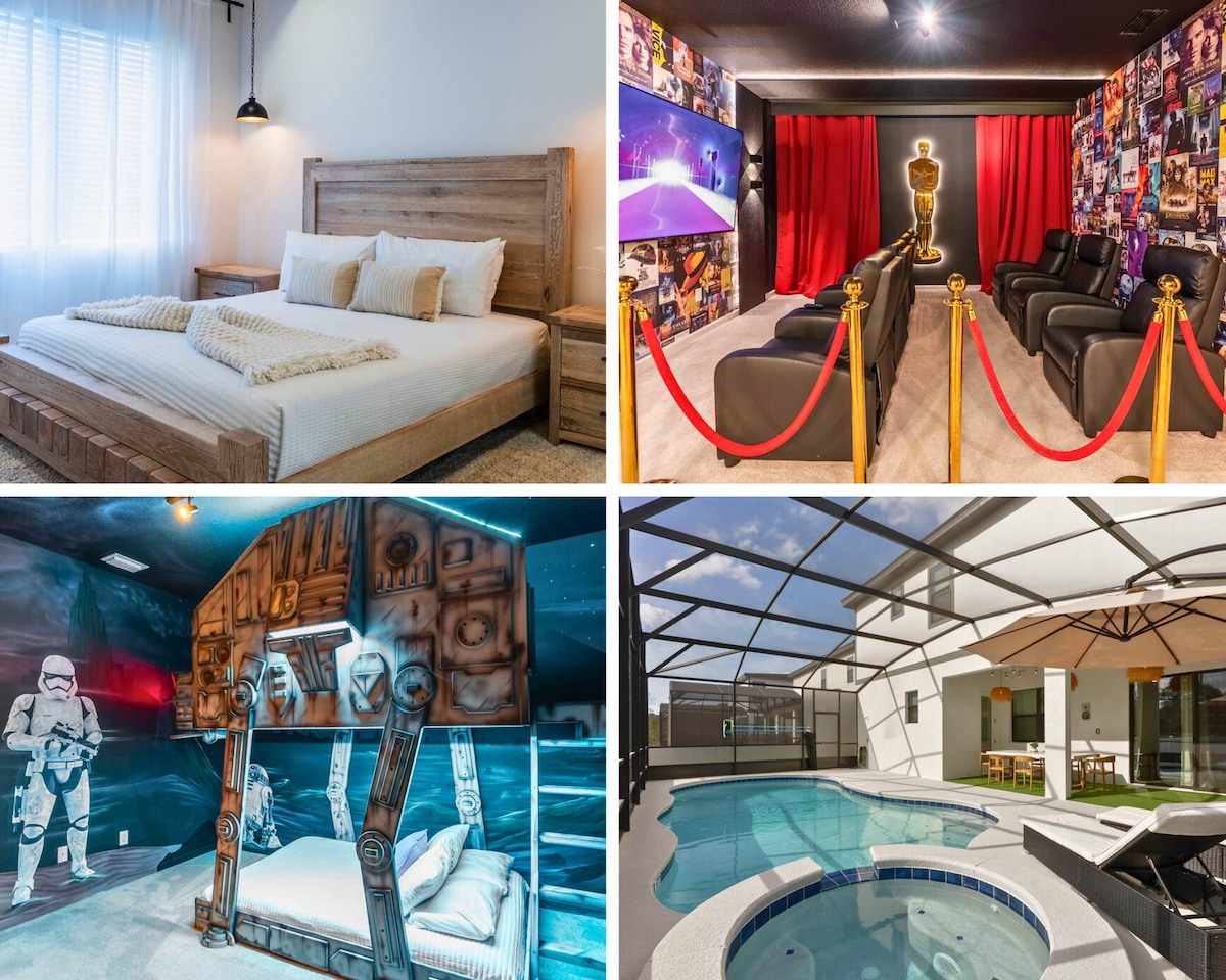 This special place is close to everything, making it easy to plan your visit. • Community: Paradiso Grande • 6 Bedrooms/6 Baths/Sleeps 16 • Disney - 10 miles • SeaWorld - 1.5 miles • ICON PARK - 4 miles • Convention Center - 3 miles • Universal - 7 miles • Exercise Equipment • Private SALT WATER Pool (new!) • Game Room with Arcade with 7500 Games, Pinball, Air Hockey • Private $35,000 Home Theater with 133" Screen and shakers on seats • Business Grade Internet • Sauna • EV CHARGER