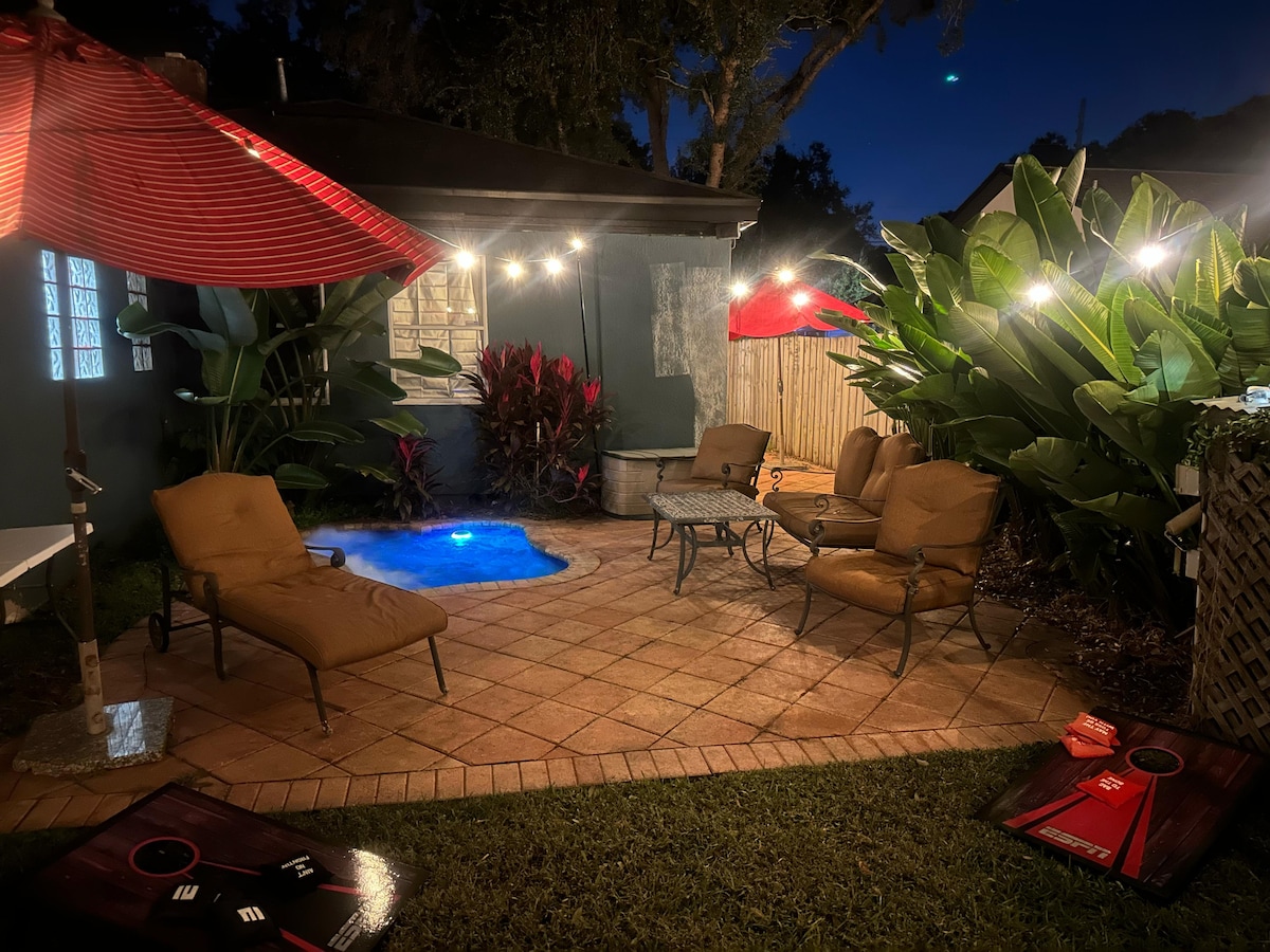 This relaxing 1 bed 1 bath space in Downtown Orlando boasts a lush fenced-in private yard, hot tub, and fully equipped kitchen. We pride our studio on comfort, wellness, and delicate attention to detail to experience the magic of a trendy space in the heart of Orlando. Enjoy brand-new remodeling, furnishings, and appliances. This is the back unit of a 2-unit property. We include: ✅50" TV ✅Luxury mattress ✅Fiber optic Wi-Fi ✅Decaf Coffee & Tea ✅Disney Plus, Hulu, Max, Netflix ✅ Free Parking