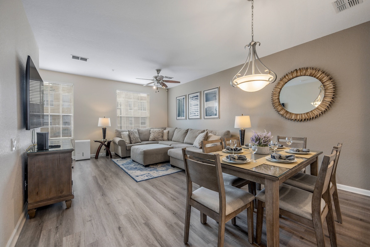 Welcome to your ideal getaway! This beautifully appointed 2-bedroom, 2-bathroom vacation home offers everything you need for a memorable stay. Centrally located, this gem features high-end decor and a stunning kitchen that’s perfect for preparing meals together. PERFECT for business trips, family getaways or couples looking for a retreat. Enjoy both Downtown nightlife and the best Orlando Theme-parks. Free washer & dryer HUGE TVs in every room Fast Internet (Ethernet)