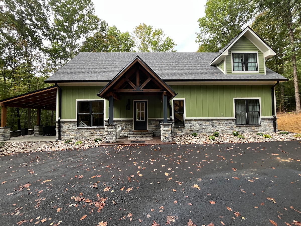 Escape to this brand-new beautifully decorated retreat on 30 wooded acres! Sleeps 12 with 3 full baths, a fully stocked kitchen, and a fun game room with arcades, climbing wall for kids, and game table for all to connect. Explore scenic trails and stunning views right outside your door. Perfect for families or groups—relax, play, and make lasting memories in the ultimate nature getaway experience! EV charger on house. Book your stay today — this hidden gem is quickly becoming a guest favorite!