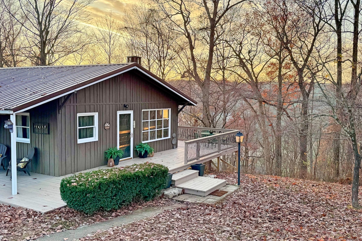 Cozy, stylish space overlooking Patoka's waterfowl resting area. This cabin is located on a peaceful, wooded 2-acres with a public forest border, offering tons of privacy. Watch the sun rise from the gentle swing of the wooden boat, relax in the spacious hot tub, birdwatch from the top deck, enjoy hiking the nearby Hoosier National Forest, hunting, and fishing; 1.5 mi to King's Bridge Boat Ramp, 2.6 mi to Walls Lake. Short drive to French Lick, Marengo, Paoli Peaks, golf courses, wineries, etc.