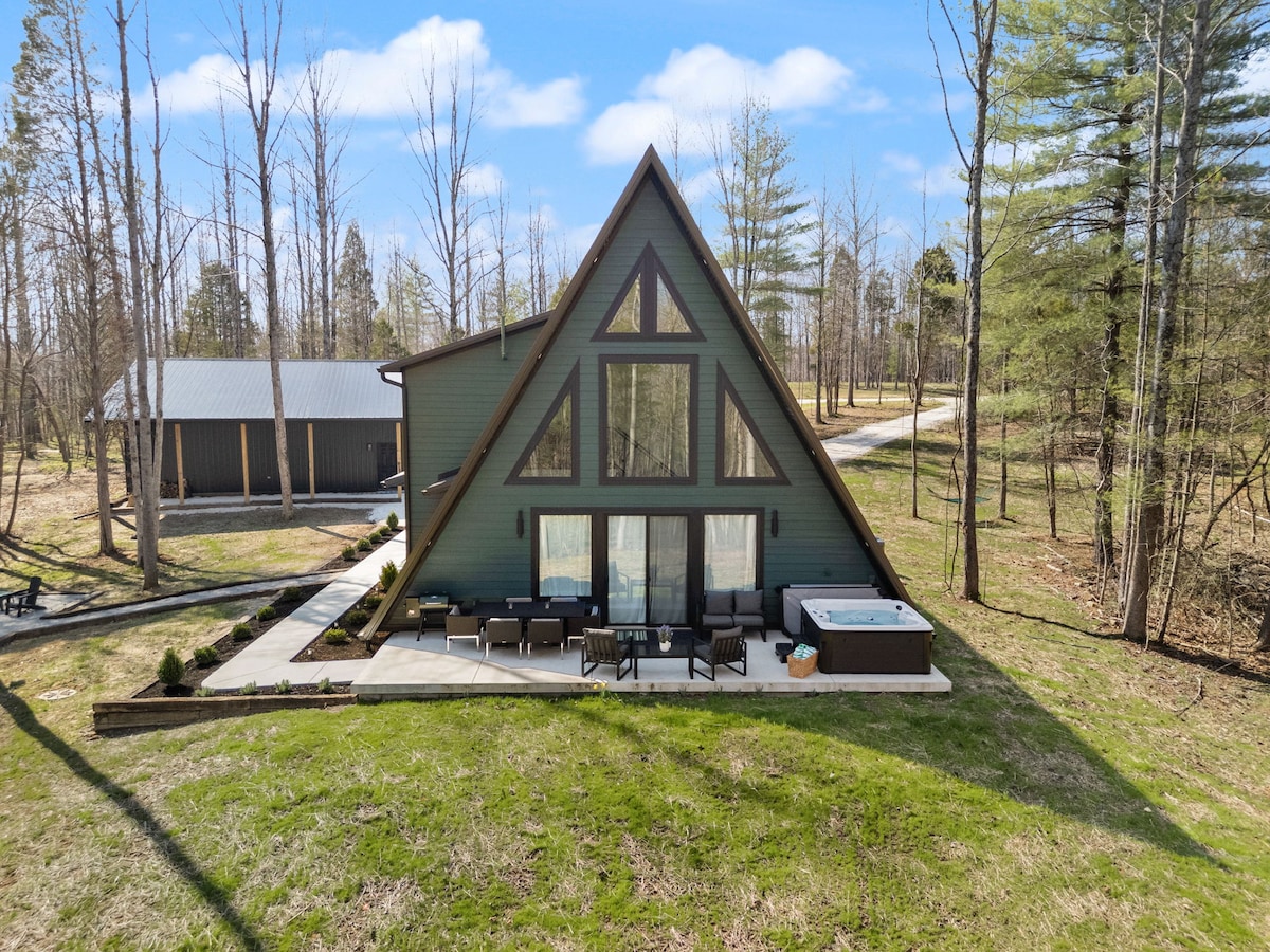 全新 A 字型房屋,位于帕托卡湖(Patoka Lake)附近的弗伦奇利克(French Lick),配备热水浴缸和篝火炉
