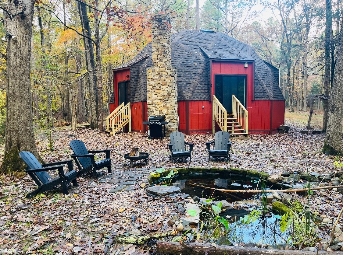 Experience a taste of Japandi in this dome home on our small homestead, and enjoy the mind and body benefits of being closer to nature with the comforts of indoor amenities. This unique space is built with a full skylight to allow you to sleep under the night sky. Complete with heating and A/C for year-round comfort, a full zen-inspired bathroom, and luxury European bedding. Enjoy your meal around a Japanese inspired floor table with straw mats and meditation cushion for seating.