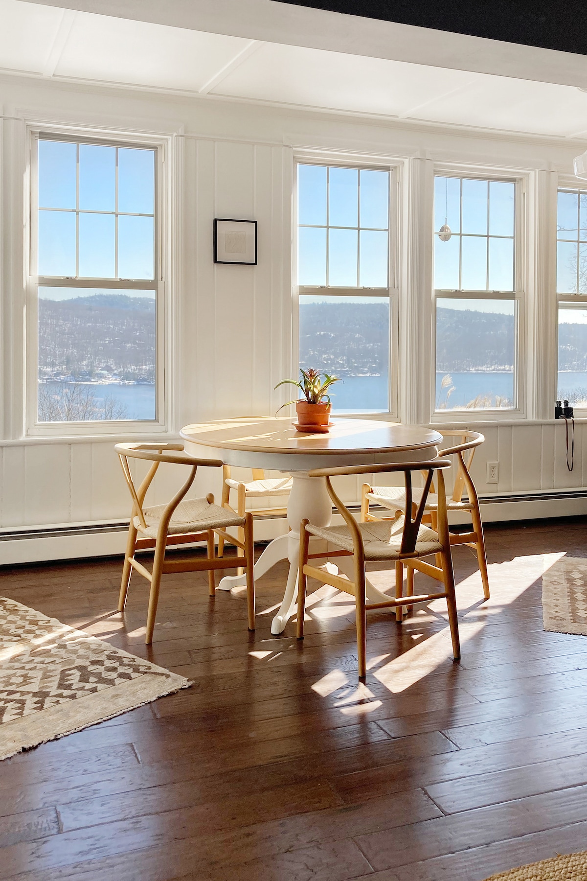 Ultra Chic Cottage set high above Greenwood Lake with Private beach and lake front community access. Minutes away from Mountain Creek Ski Resort, Spa & Water park, Mt. Peter Ski & Tubing, Warwick creameries, breweries & vineyards & apple picking. 1 BR, 1 Bath, play/office/common room. Huge wrap around fenced in deck with Mid century modern fireplace allows for scenic dining, lounging and around the fire gatherings. #LakeViewCottage_GWL Town of Warwick Short Term Rental Permit #P25-0245