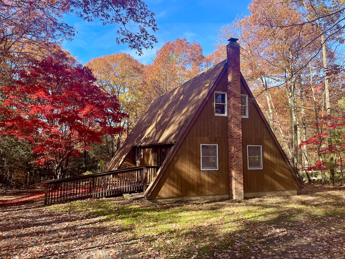 Unwind and Recharge at our serene, one of a kind A-frame nestled on 4 private acres. Enjoy a sunken hot tub, chef’s kitchen, 135" theater, arcade, fire pit and a tranquil creek running through, providing a soothing soundtrack to your stay. Our newly built wood burning Sauna facing the creek will take you to entirely enchanted world. Located at a unique tristate meeting point surrounded by charming towns, local farms, vineyards, near by activities like hiking, skiing, sky diving and water sports.