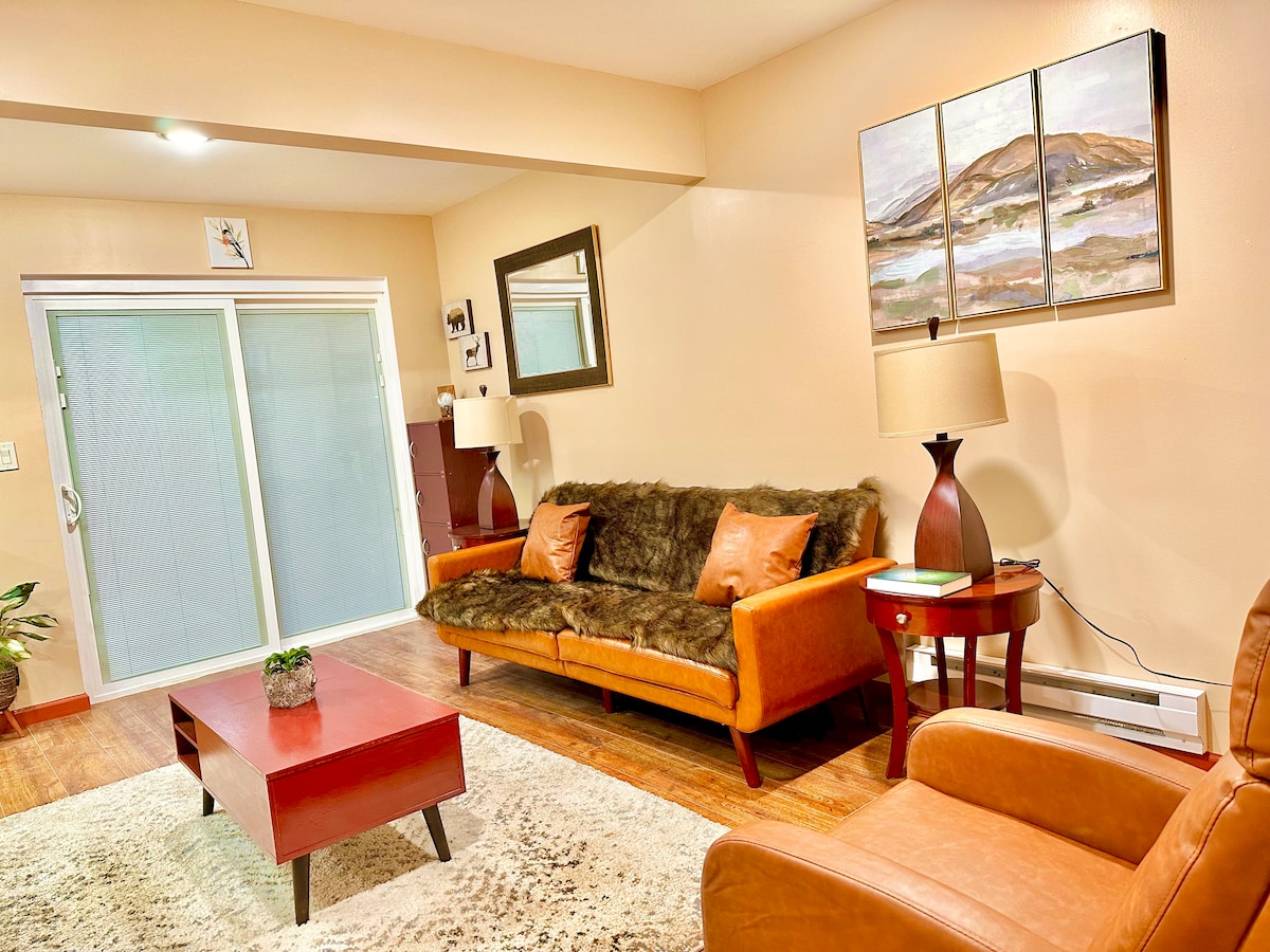 Unwind in style in our newly remodeled A-frame chalet! This cozy retreat comfortably sleeps 4 adults with room for more! Enjoy evenings around the fire pit in the backyard—everything you need is provided for a relaxing night under the stars. Inside, a spacious, custom-built dining table seats eight, offering plenty of room to dine, play games, and simply enjoy each other's company.