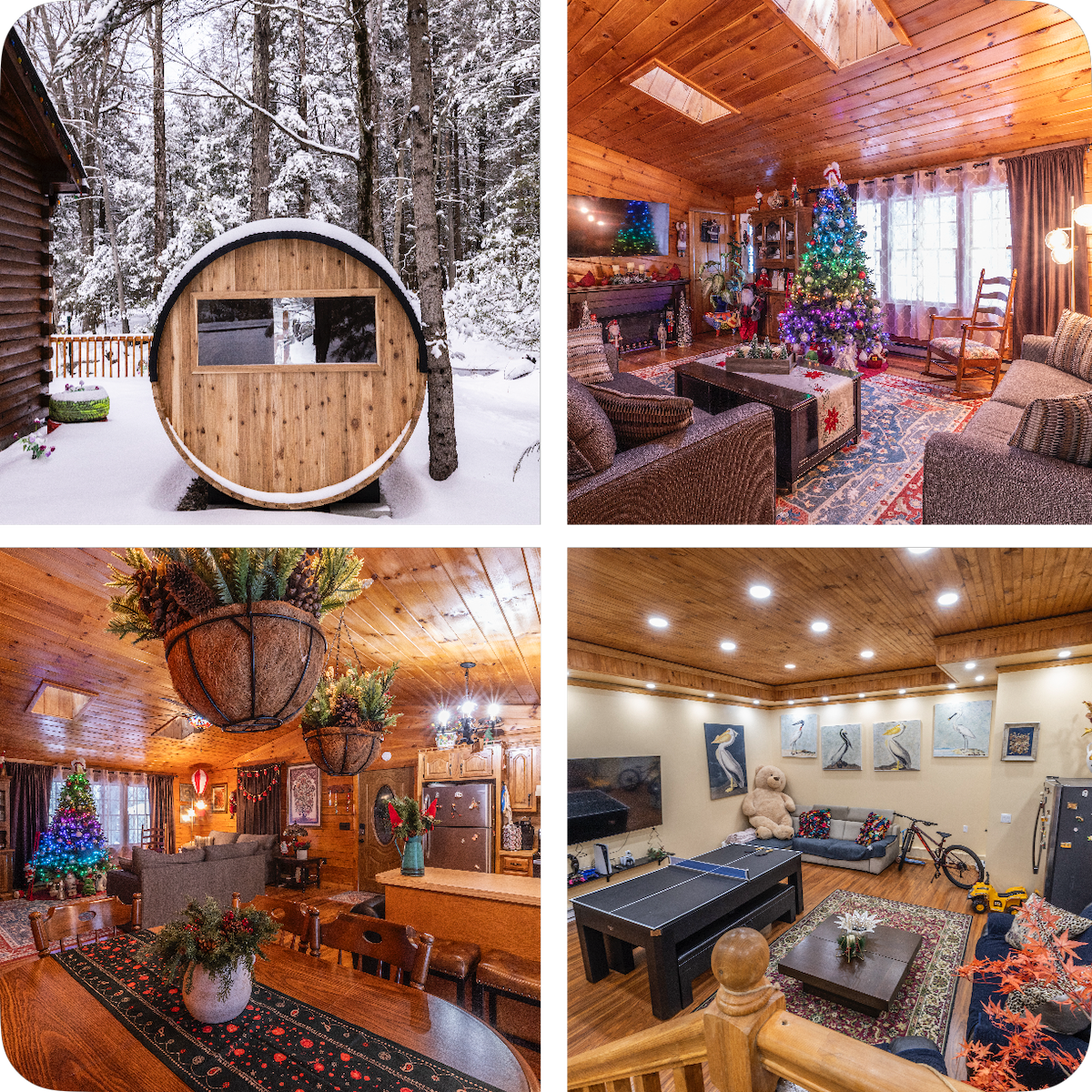 Enjoy the comforts of a magnificent log cabin set on six private acres in the Hudson Valley! Newly furnished, this 4-bedroom home comes with multiple living rooms, an indoor wood-burning stove, sauna, pool table, theater room, large private pond with dock, fire pit, and more! You'll be minutes away from restaurants, wineries, breweries, and activities for all members of your group. Near many trails, Greenwood Lake, and Mount Peter. Also a perfect getaway for skiing. Come escape and relax!