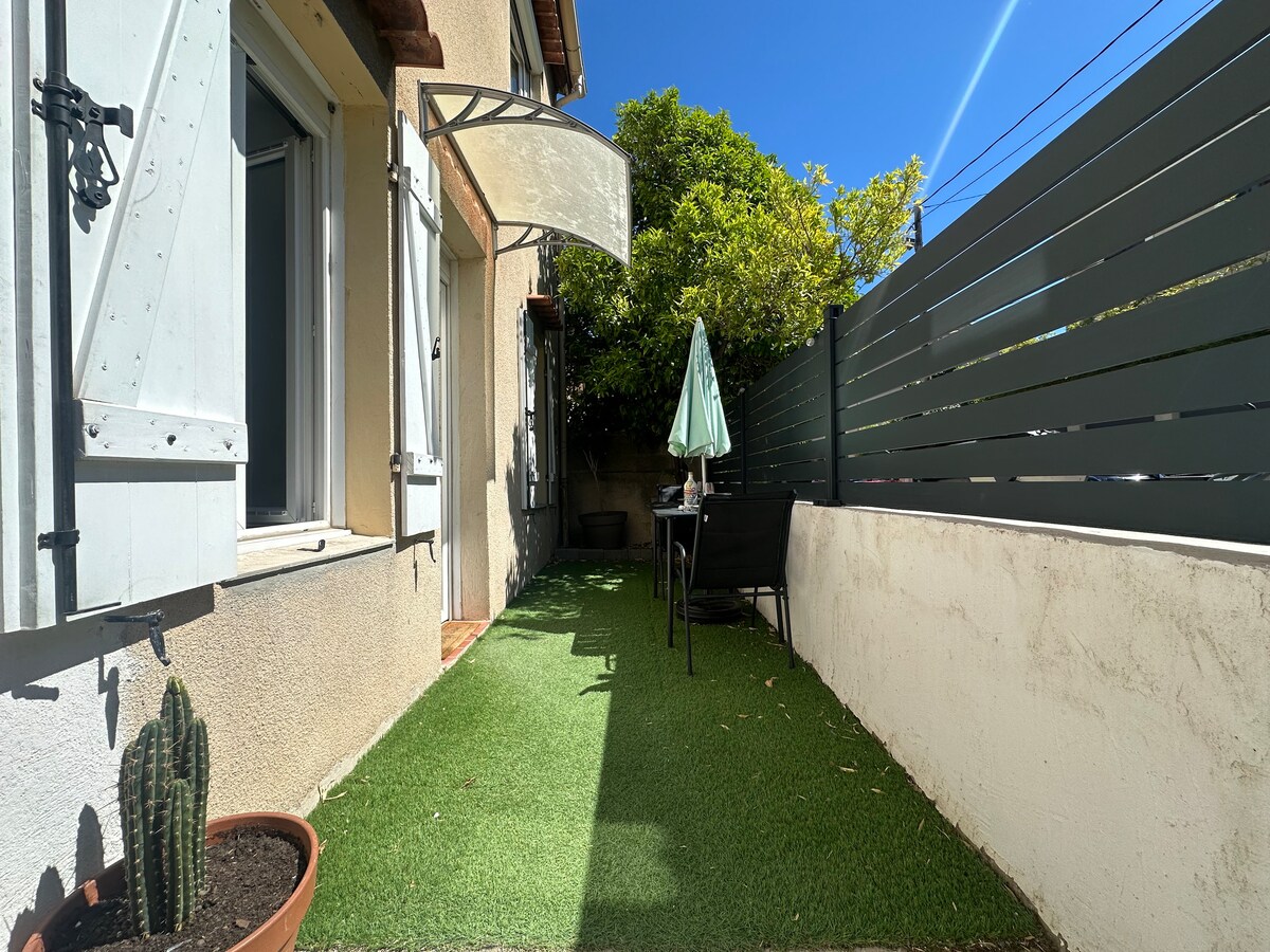 Belle dépendance de 25m2 refaite à neuf en arrière de jardin avec décoration soignée à 2 min de la plage de la pointe rouge (10 min à pied de la plage), 5 min du stade Vélodrome et 15 min des calanques. Cuisine tout équipée. Salle de bain avec douche. 1 couchage. 1 grand lit double confortable. Pour les demandes en dehors des périodes ouvertes, n'hésitez pas à nous contacter Amis windsurfeurs / randonneurs / grimpeurs et tous les autres, bienvenue