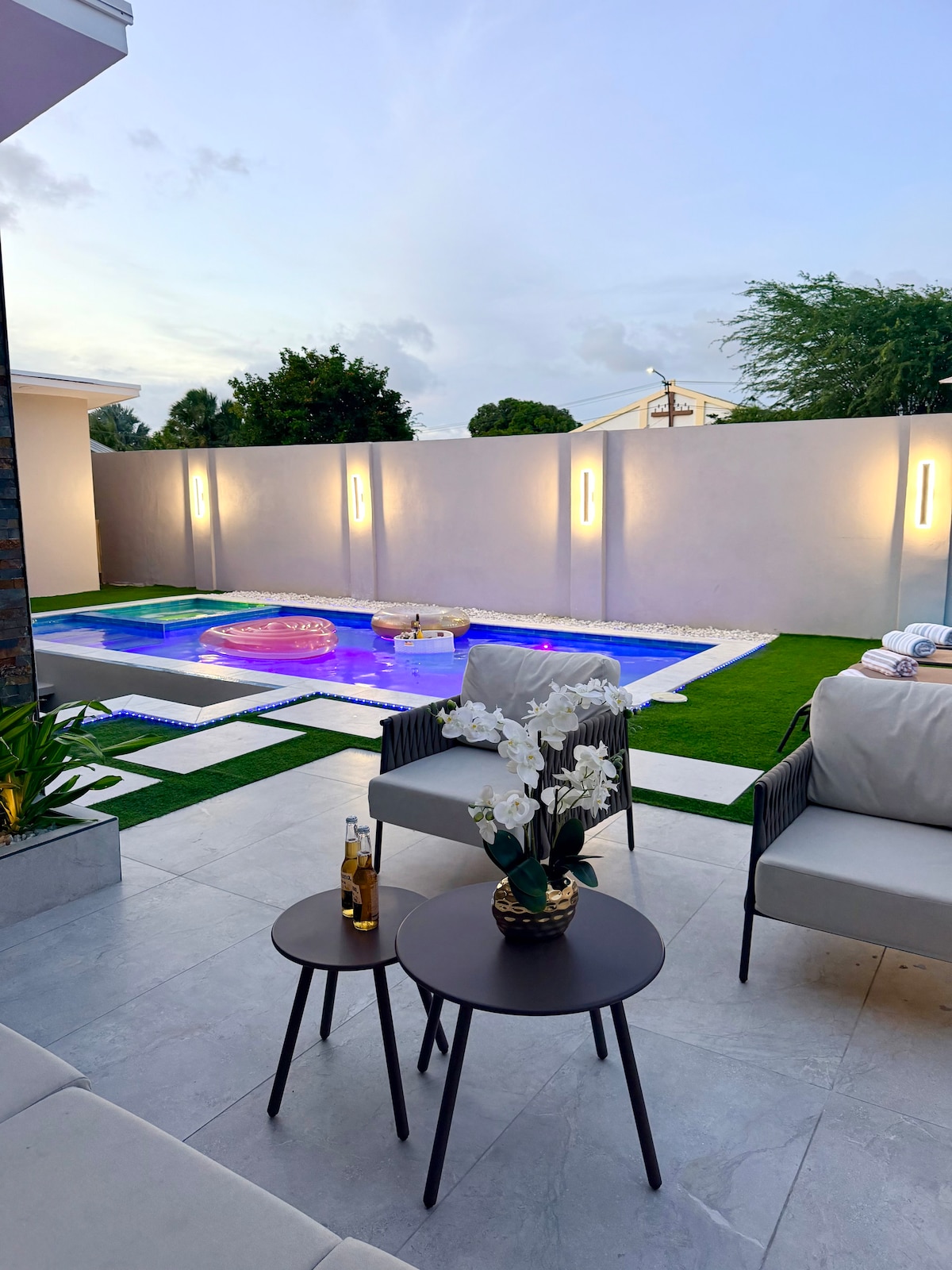 This is a very Cozy, Clean, and Modern place. There is a hot shower. We have a large gazebo with dining table and a grill. It’s located in the middle of the island area Paradera. 7 Minutes from the airport 10 Minutes from Downtown and 12 Minutes from the high rise. There are small supermarkets nearby. We have the option to rent a car with free airport pick up. The place has a beautiful salt water pool with a waterfall that will be cleaned professional twice a week.