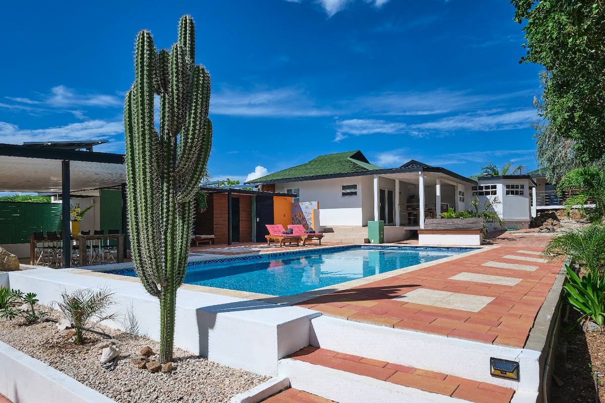 Beautiful, tranquil lodges in a lush tropical setting with birds, butterflies and a refreshing swimming pool. Guests rave about the peaceful, nature-filled vibe, stylish outdoor living space and fully equipped kitchen. Comfortable king beds, clean interiors, cool AC, hot shower, fast Wi-Fi and a helpful, friendly host make stays memorable. The area is extremely safe, calm and charming. Close to Aruba’s famous beaches, yet quiet and private. Perfect for nature lovers and relaxation.