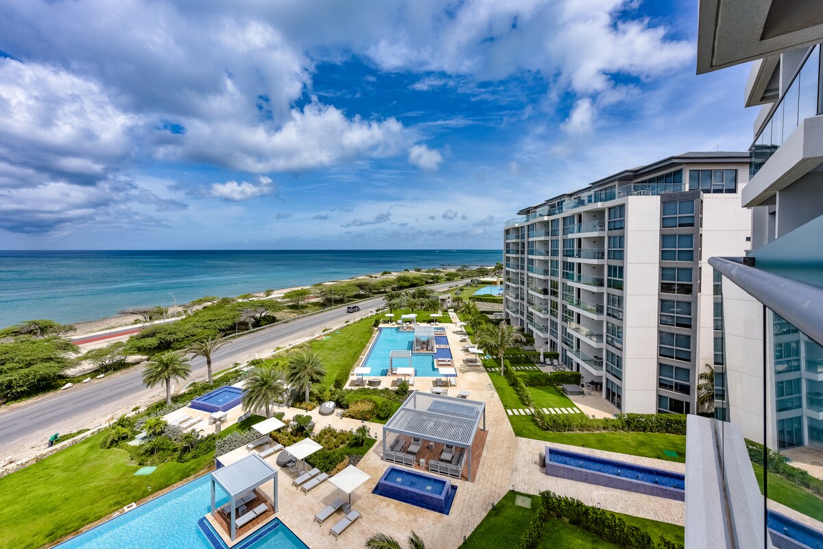 Discover the ultimate vacation retreat in our cutting-edge condo development, blending tranquil island vibes with modern urban living, and 24/7 security for peace of mind. Experience breathtaking ocean, port, and sunset vistas from our fully equipped condo, strategically nestled in downtown Oranjestad, opposite the iconic Renaissance Hotel and near exciting attractions. A mere 5-minute drive to the renowned Eagle Beach and Surfside Beach, and just 10 minutes from the vibrant Palm Beach.