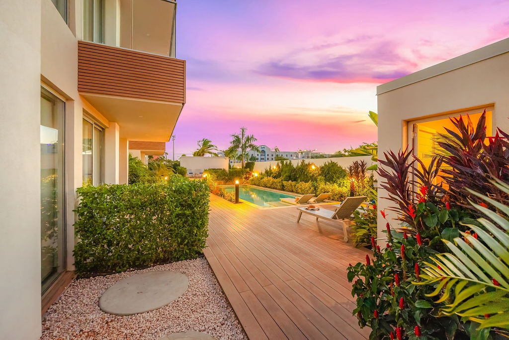 Discover the ultimate vacation retreat in our cutting-edge condo development, blending tranquil island vibes with modern urban living, and 24/7 security for peace of mind. Experience breathtaking ocean, port, and sunset vistas from our fully equipped condo, strategically nestled in downtown Oranjestad, opposite the iconic Renaissance Hotel and near exciting attractions. A mere 5-minute drive to the renowned Eagle Beach and Surfside Beach, and just 10 minutes from the vibrant Palm Beach.