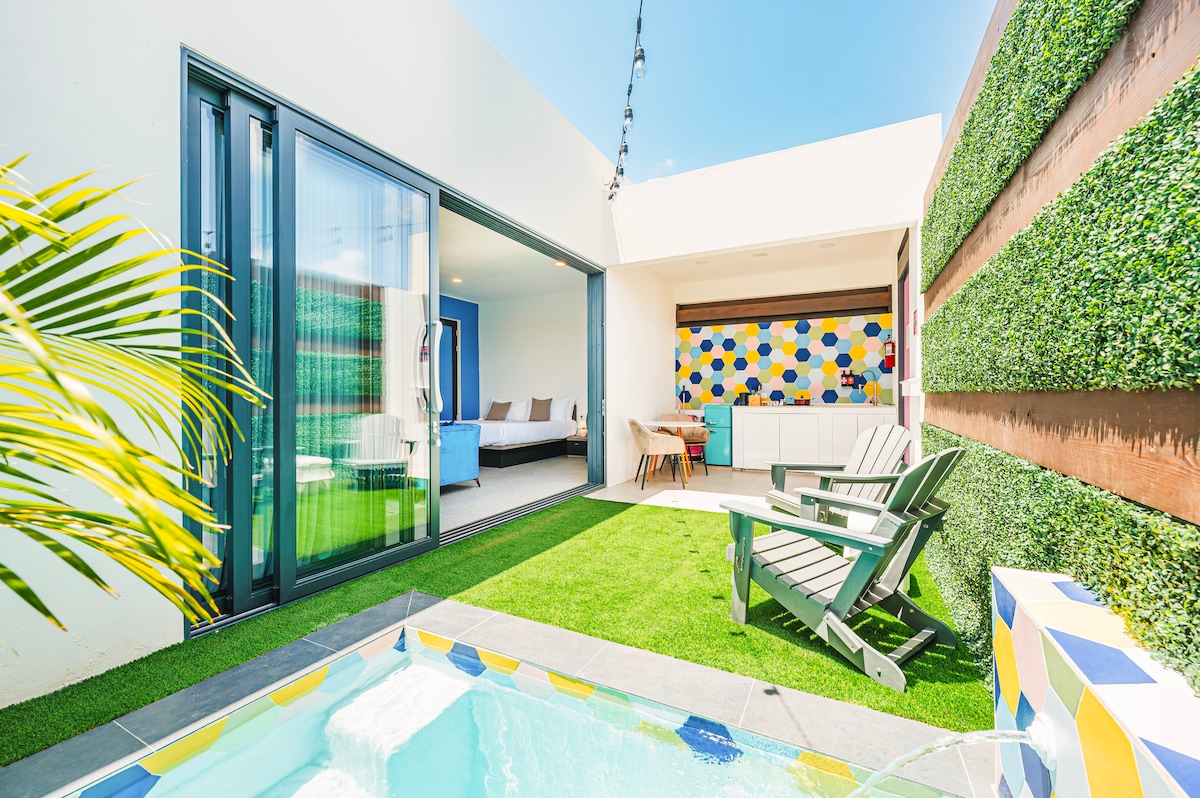 Your own private studio in an adults-only boutique retreat, designed for comfort and seclusion. Each space features a private plunge pool, lush garden, fully equipped kitchen, king-size bed with premium linens, sleek bathroom with hot shower, and a spacious living area with a 65" HD TV. A curated Aruba guide and attentive guest services complete your stay. Welcoming 3 guests per studio.