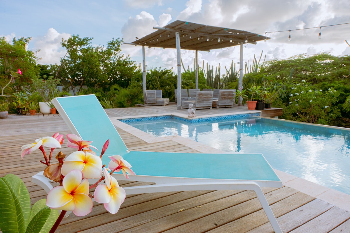 Experience Aruba at this cozy home featuring an extra-large private pool in a tropical garden.The spacious pool area boasts a deck with comfortable lounge chairs, an outdoor patio, with a grill. Enjoy your day by the pool or take a short 15-minute stroll to the nearest beach. Inside, a modern kitchen equipped with all essentials awaits. The entire house is air-conditioned, and the bedrooms are both modern and roomy. Make lasting memories with friends and family at this perfect vacation home.