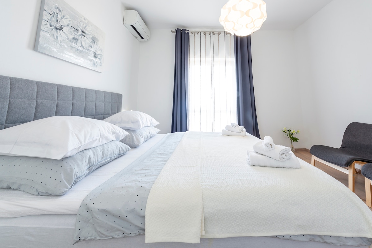 The apartment PEGI is a centrally located, spacious apartment featuring 2 bedrooms, one with double bed, the other one with a queen size bed which can be split into 2 separate beds. It also offers 2 bathrooms, one with a shower and the other one with a bath. Kitchen is fully equipped, including a dining area. The apartment features a panoramic sea view balcony, overlooking the Old Town.