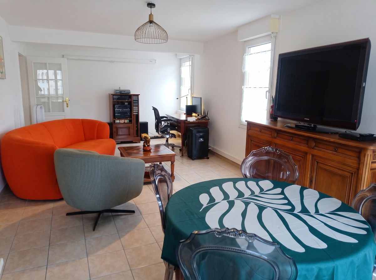 Au coeur du centre ville de Colmar, dans le quartier du triangle d'or, appartement haussmannien de 100 m2 et 3m30 de hauteur sous plafond, situé au 1er étage français d'une maison de maître avec vue sur le parc du Champ de Mars. Pas d'ascenseur. Classement 4 étoiles par la Préfecture. Parking inclus, (couvert et surveillé en face de l'appartement). Animaux acceptés sur réservation uniquement et contre participation financière (forfait 20 €).