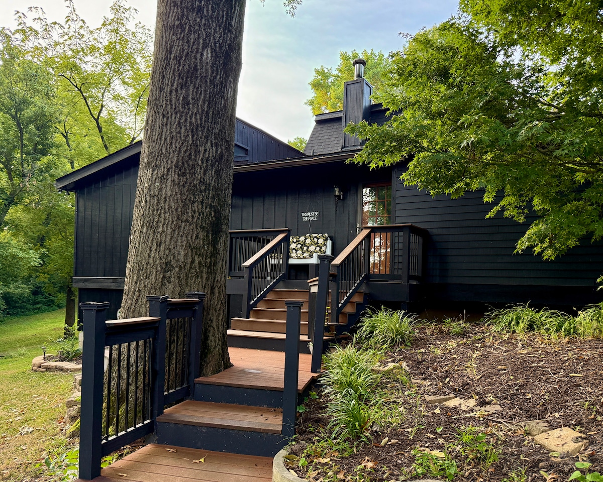 Enjoy serenity and tranquility at our modern home tucked away in a private setting just 5 short minutes from Downtown St Louis. Complementary bottled water, continental breakfast(packaged muffins) and a bottle wine will pamper you the moment you arrive.Unwind in our luxurious multifunction shower+memory foam mattress Test your swing on our scenic driving mat or unwind around the crackling outdoor fire pit. Spa and Special Occassion add-on packages available. Private off street parking.